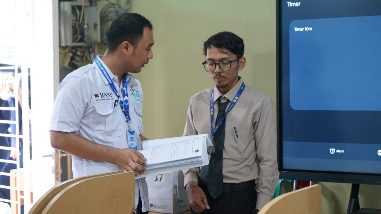 Setelah proses verifikasi dinyatakan memenuhi standar, kegiatan dilanjutkan dengan pelaksanaan asesmen kompetensi terhadap Asesi. Asesmen ini bertujuan untuk mengukur kemampuan, keterampilan, dan sikap kerja siswa sesuai dengan skema sertifikasi yang berlaku, sehingga peserta yang dinyatakan kompeten berhak memperoleh sertifikat kompetensi yang diakui secara nasional.